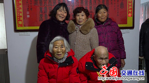 中午生日宴会开始前,姜兆领老人被搀扶到堂屋,众亲友点起了生日蜡烛,共同祝福老人健康长寿,并争相与老人合影留念。