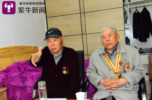 老哥俩戴着勋章讲述他们的革命史