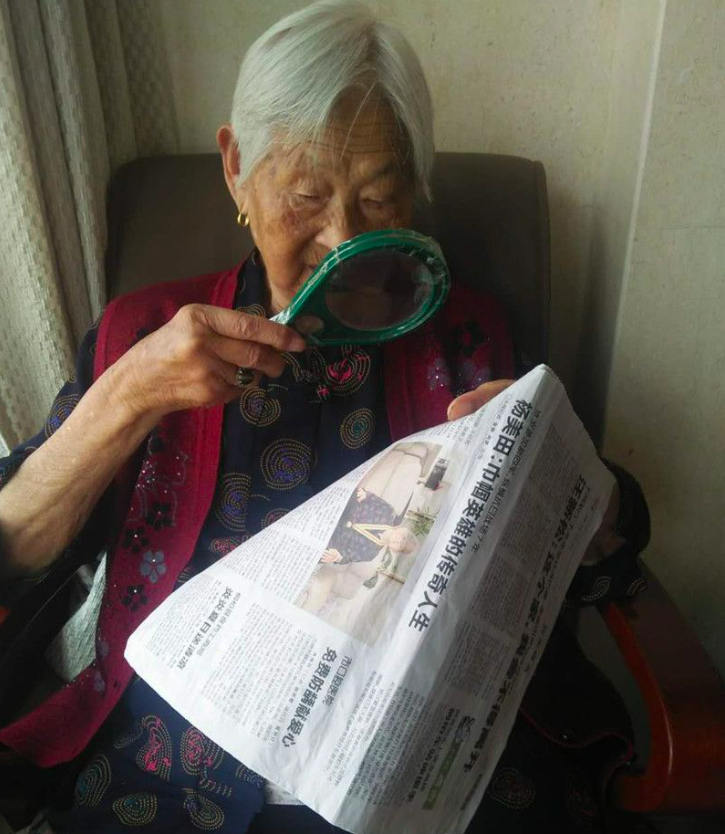 记者看到,老式放大镜已经破损,用透明胶缠了又缠。这是老人生前读书看报的工具,即使在病床上,老人也一直坚持读党报党刊,这是她坚持了一辈子的习惯。