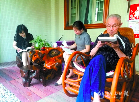 卢文普与妻子胡萍、女儿卢燕一起享受阅读时光。/佛山日报记者黄碧云摄