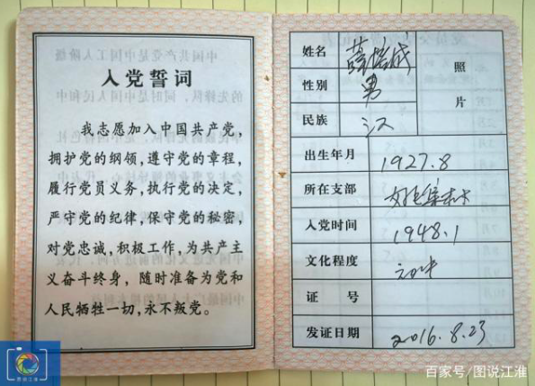 在部队里,我光荣的加入了中国共产党。一直到现在,我还在按期向组织缴纳党费,平时,我都把党徽好好的珍藏着,我觉得参加组织会议的时候,才能戴党徽。目前,我也是我们镇子上零星的几个建国前入党的老党员了。前段时间,镇里的干部还给我送来慰问金,这么多年,我一直受到大家的关心,我很欣慰,虽然我一直生活在农村,但是,我也时刻以严格的党员标准来要求自己。