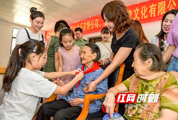 火红的红领巾辉映着纯朴的情怀,飘香的月饼浸润着温暖的关爱。9月7日,志愿者宋信智带领爱心企业、志愿者,来到湖南省军区长沙第四干休所东湖服务站,看望、慰问这里的红军遗孀和抗战老兵,倾听老兵讲述抗战故事,了解抗战历史,接受红色教育,传承革命精神。