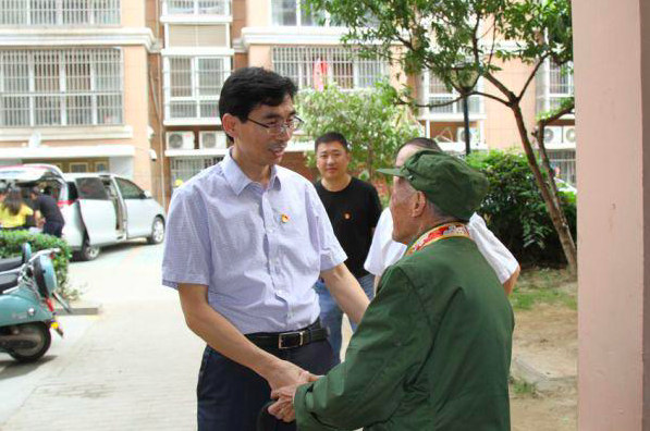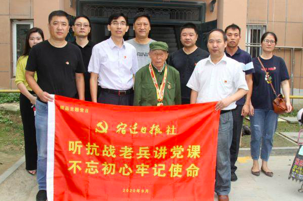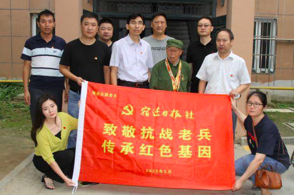 值国庆中秋双节即将到来之际,9月22日上午,宿迁日报社党委书记、社长杨卫国带领宿豫记者站党支部党员,到宿豫区顺河街道京东社区豫东新城小区,看望91岁抗战老兵董成功老人。