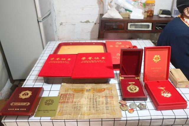 “把有限的生命投入到无限的为人民服务中去......”光荣在党五十年奖章、湘西剿匪胜利纪念章、华北解放纪念章......李忠老战士1942年从军,先后参加过平津战役、渡江战役和湘西剿匪战斗等大大小小的战役,在湘西的剿匪战斗中,他的右腿被子弹击穿,伤愈后转入当时湖南省黔阳县的公安部队。1950年,他光荣入党,成为了当时村里第一名党员。