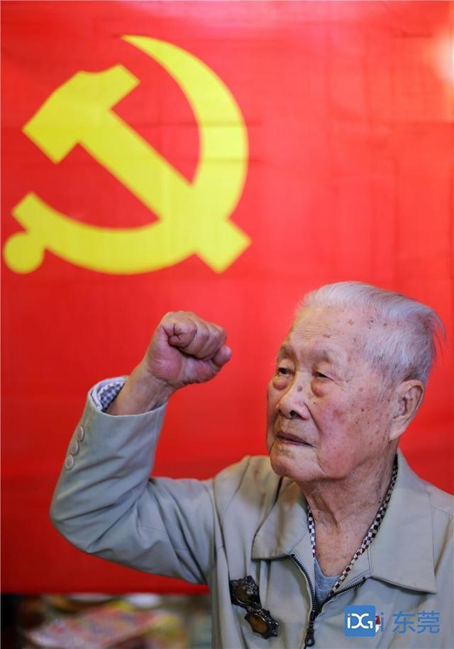 2021年4月9日,97岁的抗战老兵黎洪在家中重温入党誓词