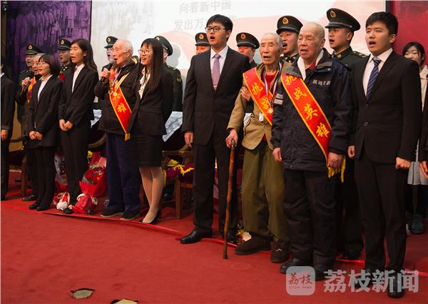解放军73917部队官兵与南京师范大学学生与老兵共唱《团结就是力量》 摄影:崔志同