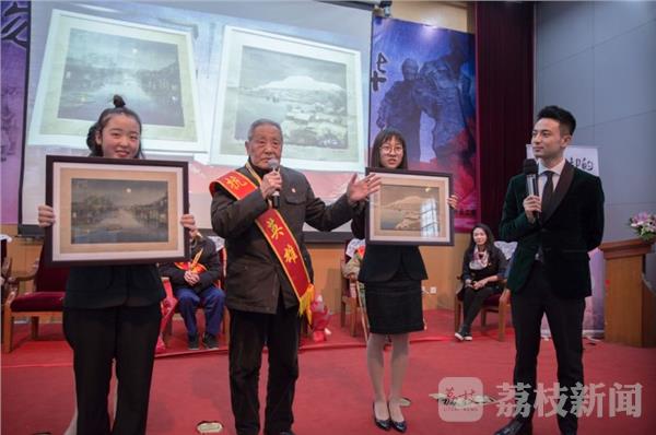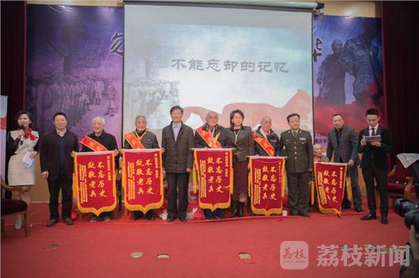 南京师范大学校领导等人为抗战老兵授“民族英雄”锦旗 摄影:崔志同