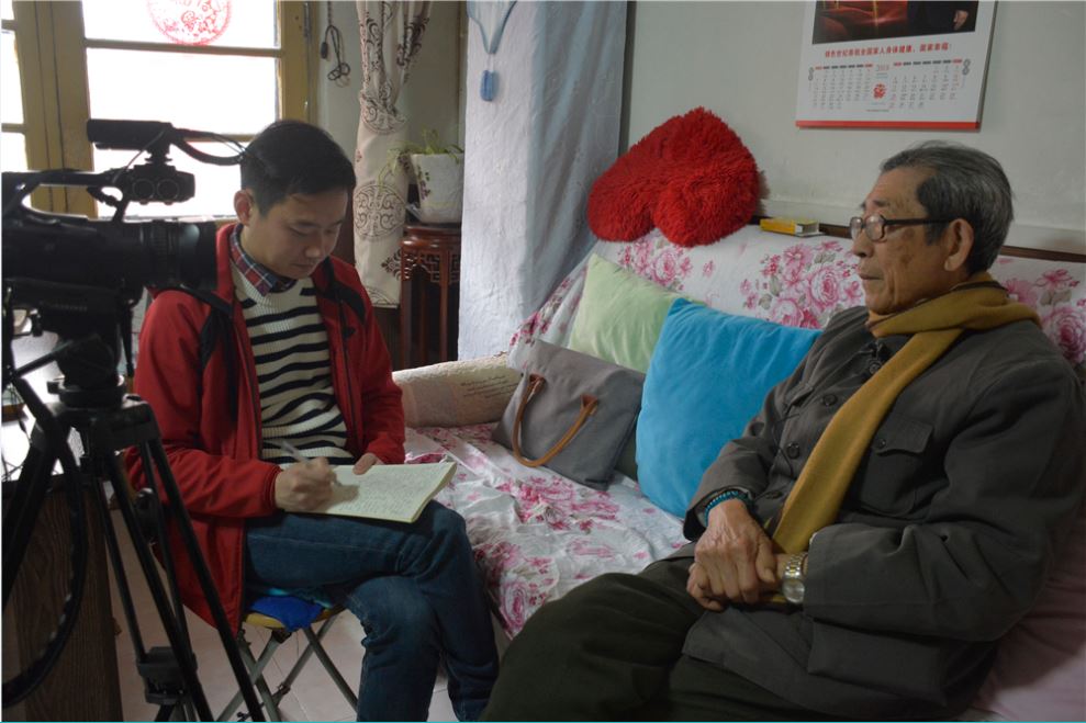 课题组正在访谈新四军宿迁县大队老战士张可才