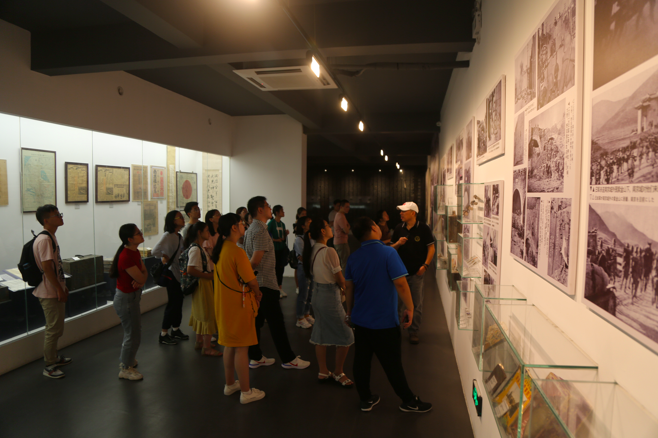 在声情并茂的解说下,志愿者们对于抗日战争有了更深的感悟,也被吴馆长无私奉献的家国情怀所感染。民抗馆内的每一件藏品背后都蕴藏着动人的故事,向人们述说着那场关乎家国命运战争是如何的残酷。通过参观,志愿者们能够更加深刻地理解抗战老兵口中的艰苦岁月,了解每一个老兵或平静或激动的述说之下,他们所经历的是怎样的一场考验。岁月的流逝不断消磨着老兵们的记忆,他们或许忘却不能想起,或许失言无法说出,或许归队与战友相见。曾经,志愿者们为无法辨别老兵模糊不清的口音而懊恼,如今,志愿者们明白自己肩上的责任,明白自己所整理的不仅仅是一个老兵光荣的抗战口述文稿,还是抗战记忆的重要留存。时光不能抹去历史的印记,光荣与悲壮属于过去也影响当下,作为国家的一份子,个人与祖国命运紧紧相连,共兴衰、同命运,铭记历史,书烽火记忆传家国情怀!