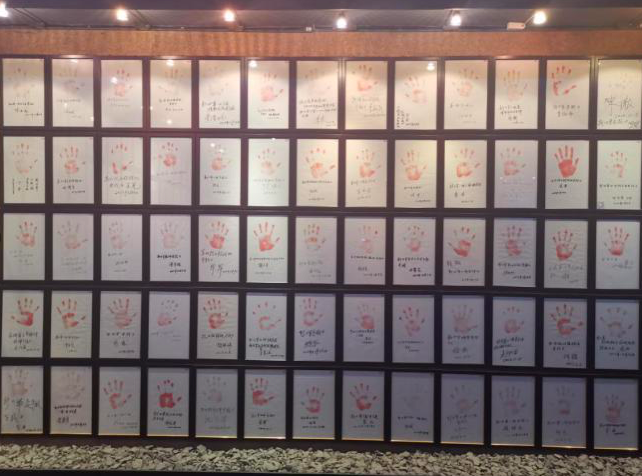在民抗馆三楼的墙壁上,挂满了抗战老兵的手印。每一个手印对应每一位老兵,背后是精忠报国的抗战故事与口述视频、音频,看似平凡的老人在讲述着自己那段不平凡的经历。除此之外,馆内还挂着满满101期的《支那事变画报》,“‘支那’一词本不是蔑称,起初是褒义,只是后来两国关系发生了变化,日本膨胀侵华,蔑视‘支那’一词所代表的中国,而中国受尽欺压,这一名词逐渐成为贬义。”吴馆长语重心长地说道。