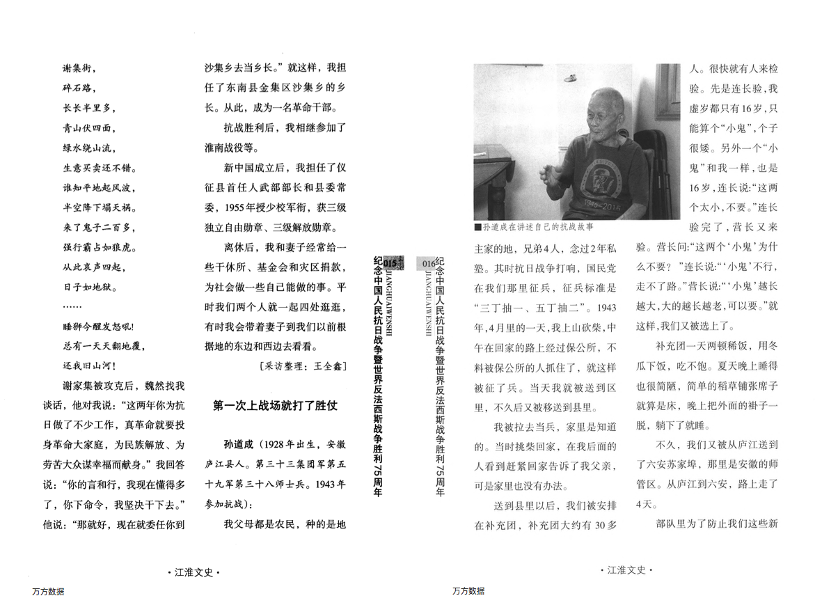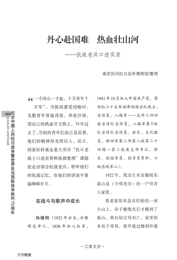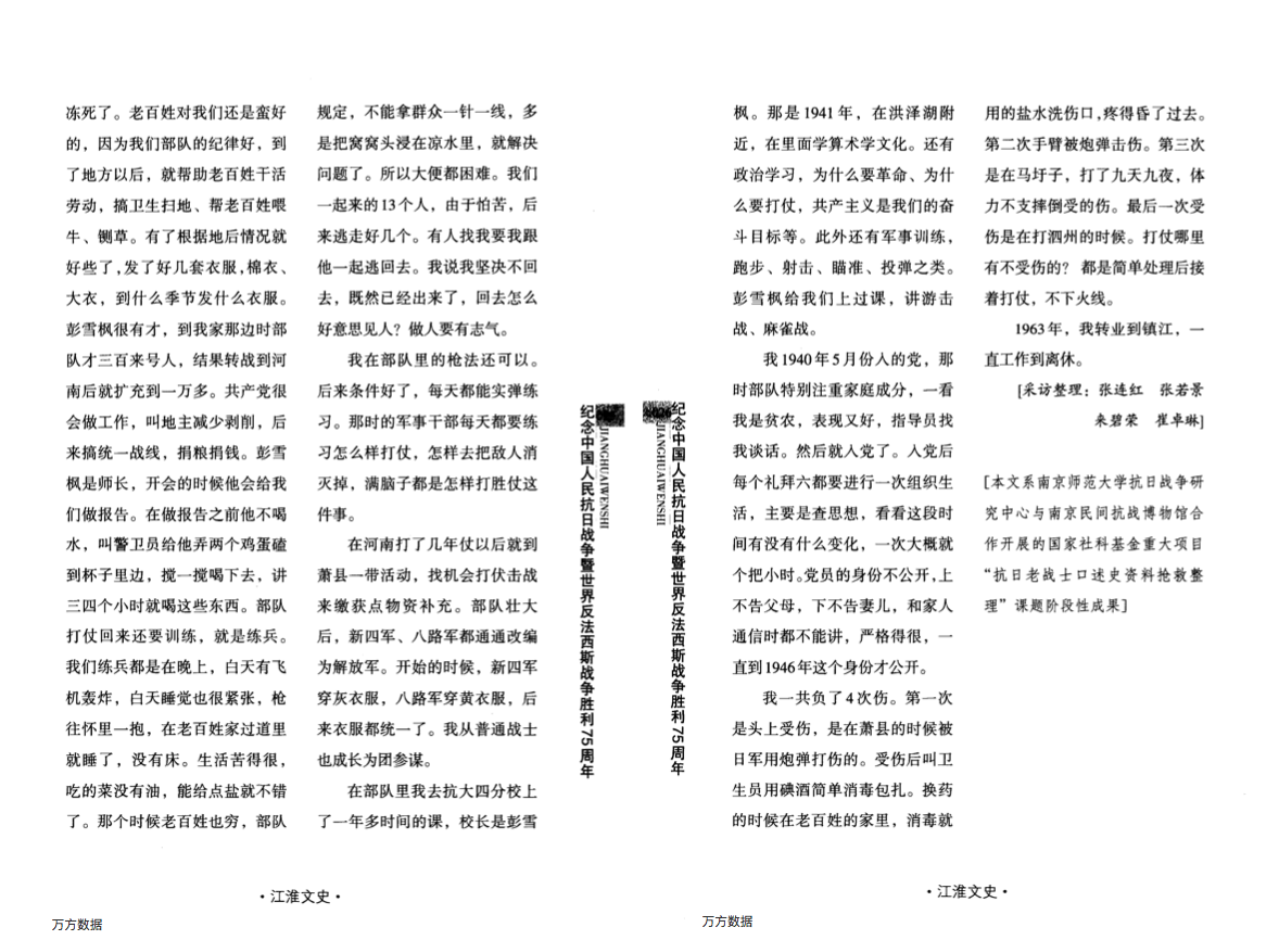 《江淮文史》2020年第5期刊登课题组访谈整理之抗战老兵口述实录 2020年10月29日 10:53 Joyue-Chang 前一篇 后一篇 (来源:万方数据知识服务平台 原文请访问http://d.wanfangdata.com.cn/periodical/jhws202005002)